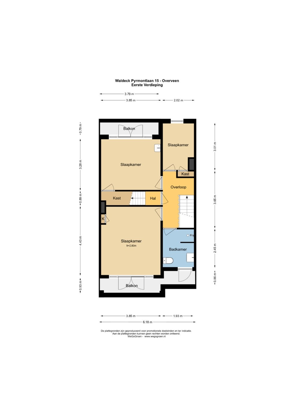 Er zijn 2 balkons; een aan de voorzijde en een aan de achterzijde van de woning.