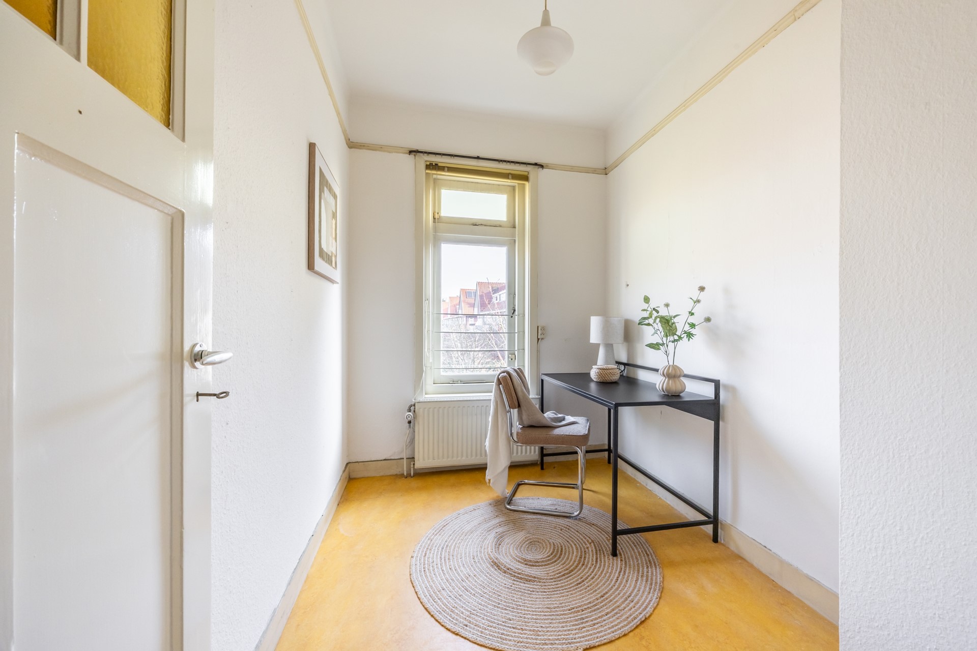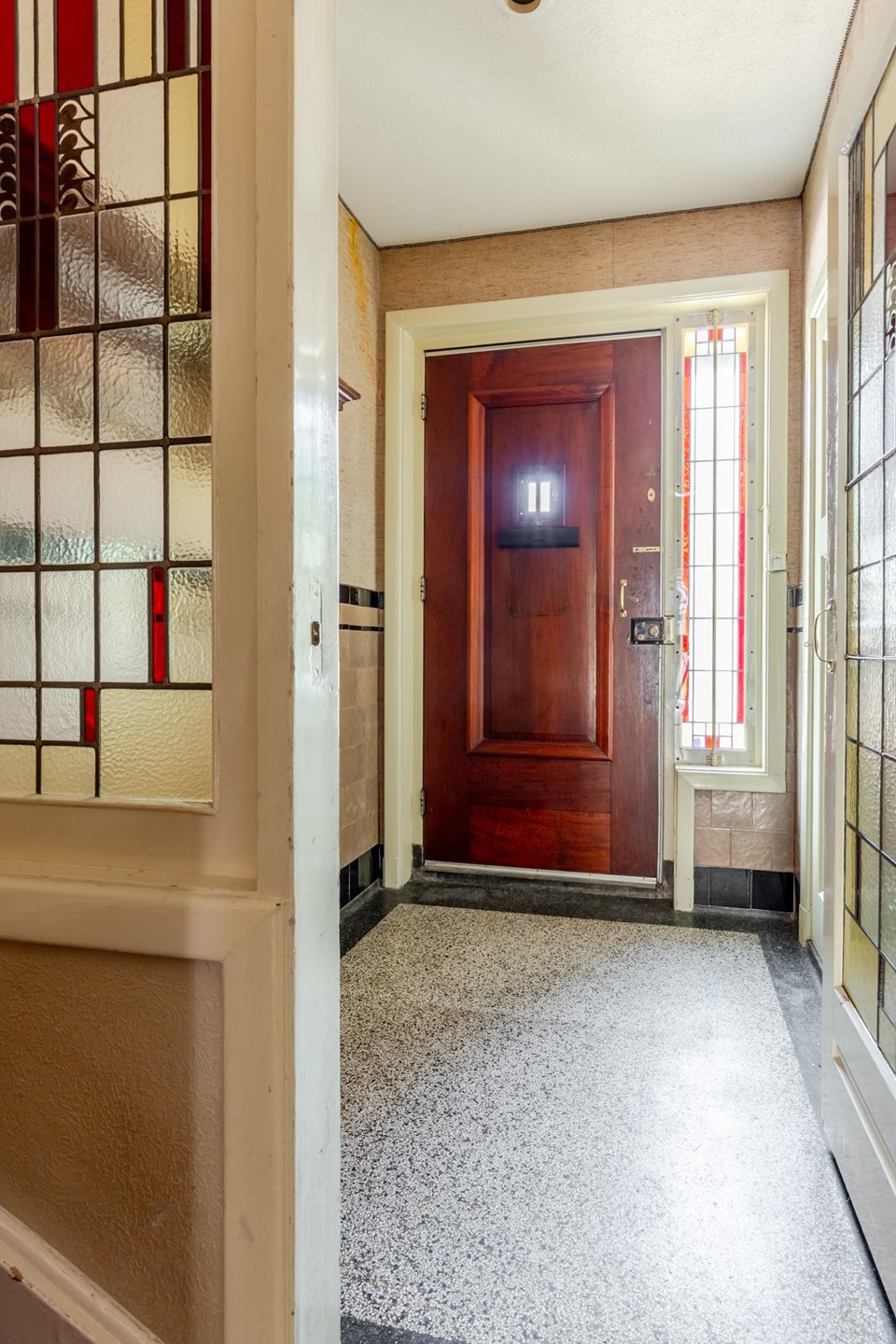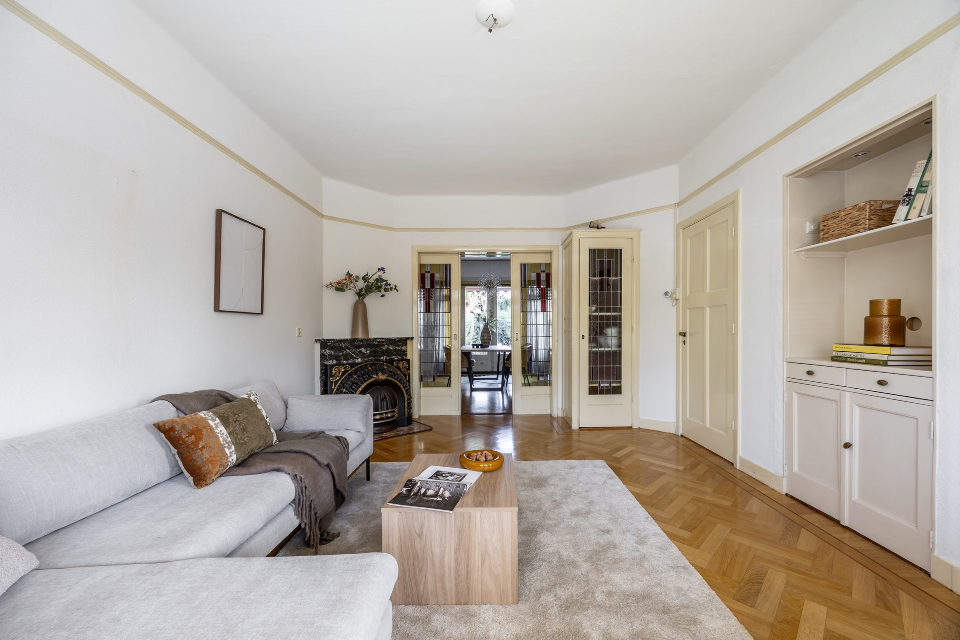 Iedereen die voor deze woning kiest, is in voor een heerlijke mix van historie, sfeer en comfort. Gebouwd in 1930 – een periode waarin huizen nog werden opgetrokken met aandacht voor detail én gevoel voor stijl – straalt deze tussenwoning alvast de nostalgie uit die deze wijk zo typeert. De originele glas in lood deuren en visgraat parketvloer van de kamer en suite stralen karakter uit, net als die prachtige hoge plafonds. De granito vloeren voegen een vleugje nostalgie toe aan het geheel. De ruime indeling zorgt ervoor dat je alle kanten op kunt met de inrichting. Op de eerste etage is zeer recent glasisolatie aangebracht.